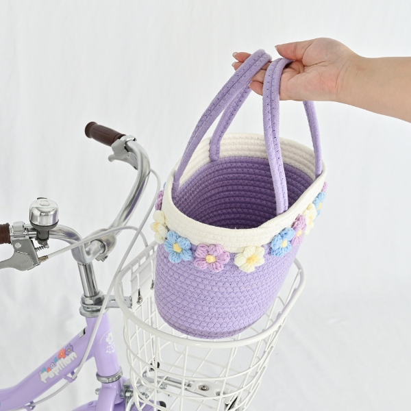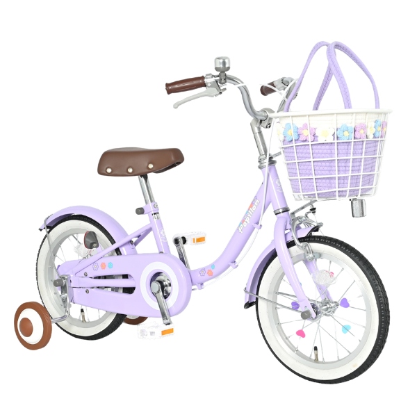 【メーカー直送】 子供用自転車 14インチ 美和商事 パピヨン14 ラベンダー 補助輪付き キッズ自転車 キッズサイクル お花かごバッグ付き/srm
