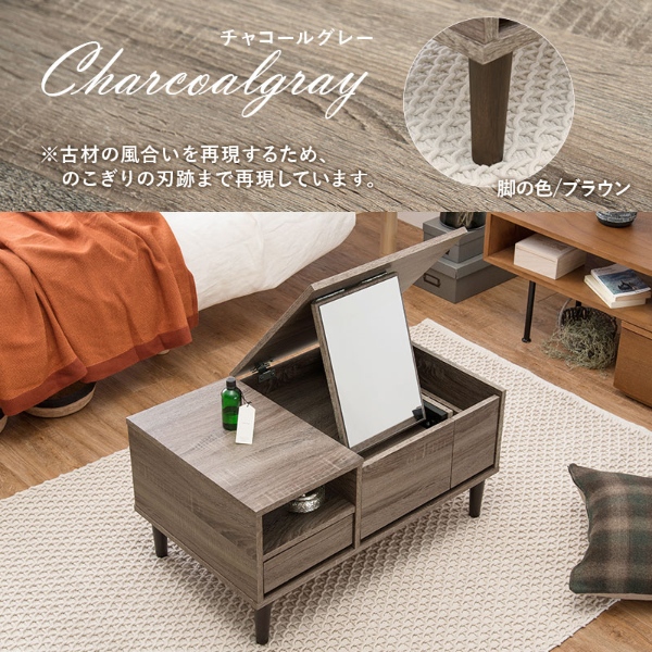 ドレッサー テーブル 収納 大容量 ドレッサーテーブル おしゃれ コンパクト 75cm ローテーブル デスク 机 コスメテーブル チャコールグレー/srm