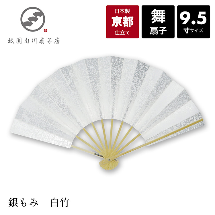 | 9寸5分舞扇子 日舞 踊り ディスプレイ コスプレ 扇子 日本製 京都「銀もみ 白竹」祇園白川扇子店 |