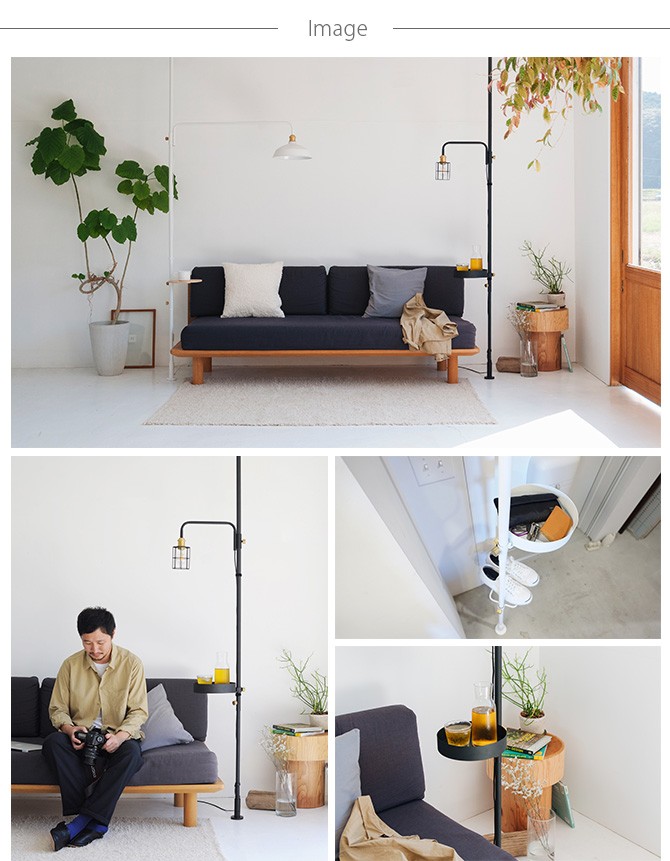 壁を傷つけずに、ソファ横や玄関などに省スペースでちょっとした小物置きを設置できます。