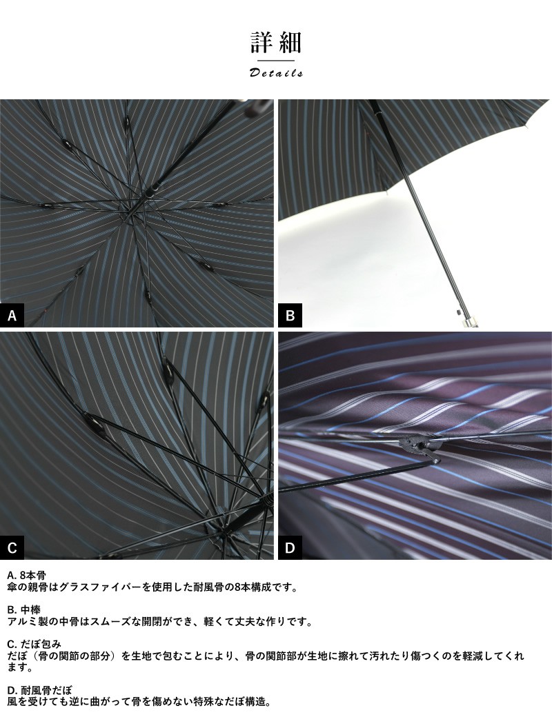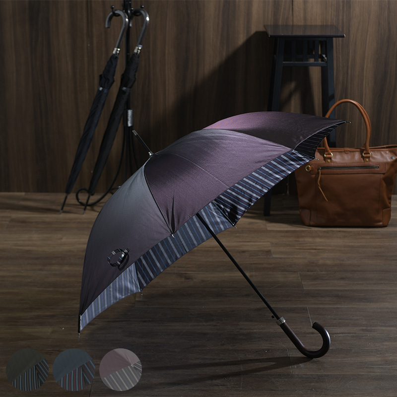 Ramuda ラムダ メンズ 傘 65cm 甲州織 オルタネート ストライプ 耐風骨 8本骨 楓持ち手 UV加工 ワンタッチ ジャンプ