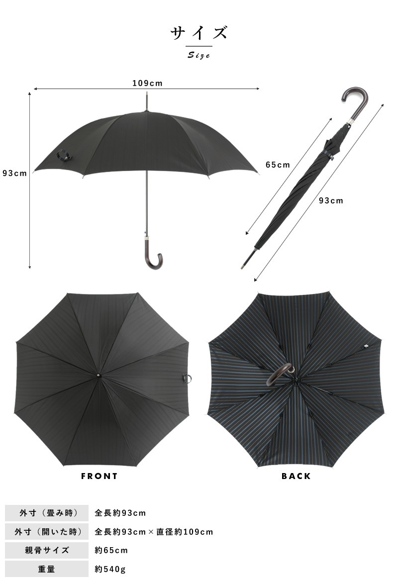 ビジネスマンのことを考えた耐久性のある高級傘サイズ:・畳んだ時:全長93cm