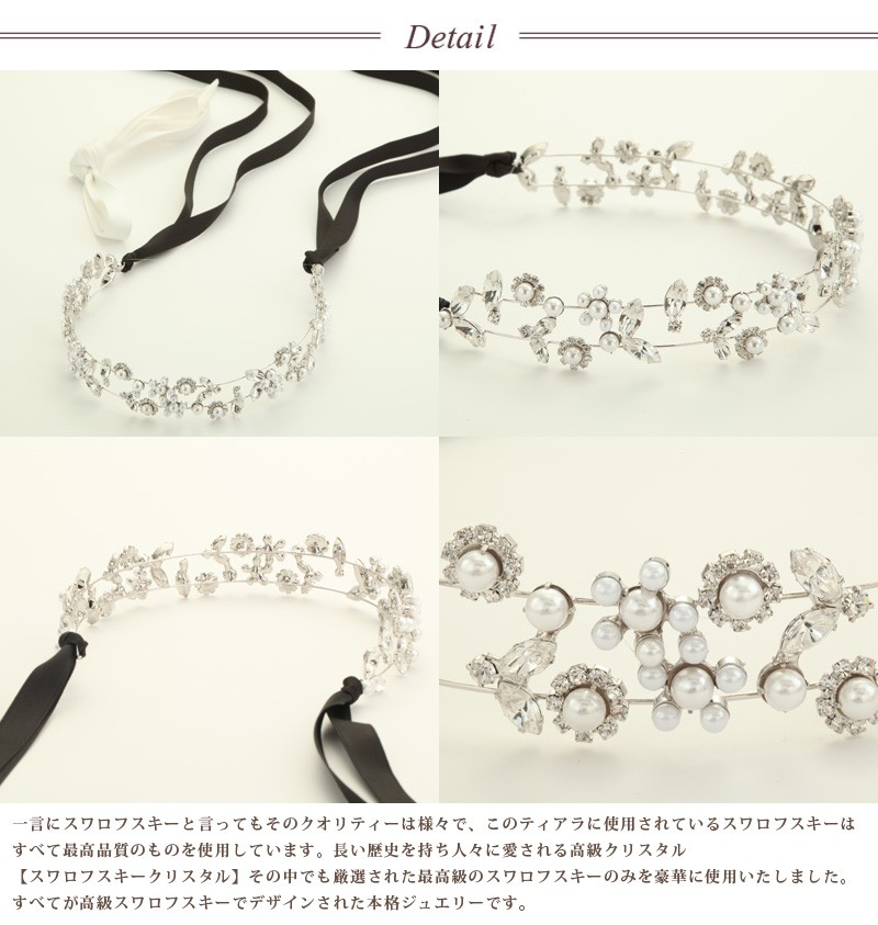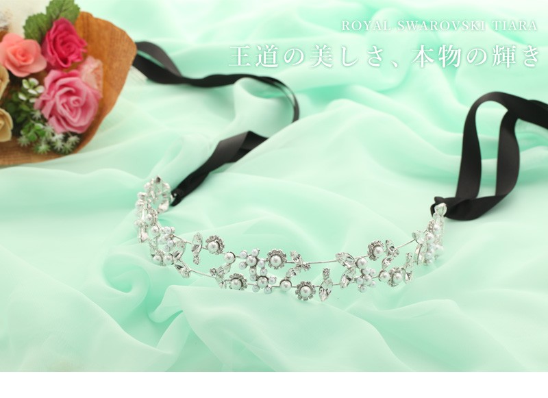 一言にスワロフスキーと言ってもそのクオリティーは様々で、このティアラに使用されているスワロフスキーはすべて最高品質のものを使用しています。長い歴史を持ち人々に愛される高級クリスタル【スワロフスキークリスタル】。その中でも厳選された最高級のスワロフスキーのみを豪華に使用いたしました。すべてが高級スワロフスキーでデザインされた本格ジュエリーです。