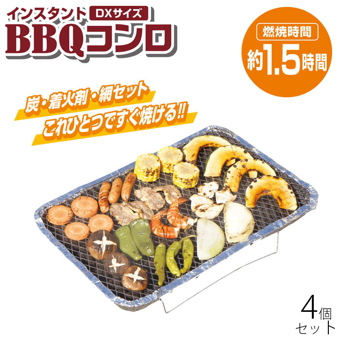 | インスタント BBQコンロ DX 屋外用 炭付き 着火剤付き 網付き 使い捨て HAC1229 BBQに必要な炭・着火剤・網が一つのセットに! |