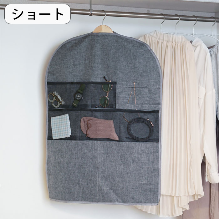 | 衣類をホコリから守るショート丈のポケット付き衣類カバー |