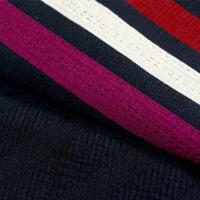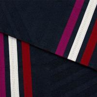 表地は、黒色地に縞(ストライプ)を組み合わせた幾何学模様と、赤・生成り・赤紫色の3本ラインです。