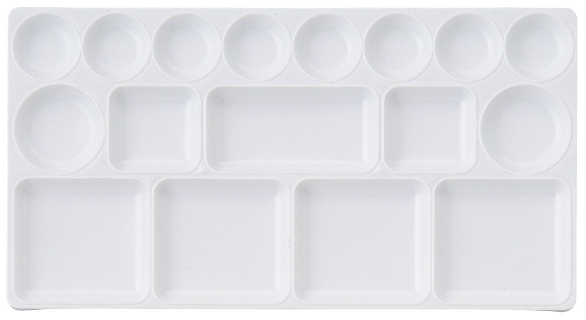 深さ最大12mm!一度でたくさんの絵具が溶ける。絵具がこぼれにくく、乾きにくい!深さが3段階に分かれています。(最大深さ:約12mm)アクリル絵具使用可能310×165mm 1面ポリプロピレン製