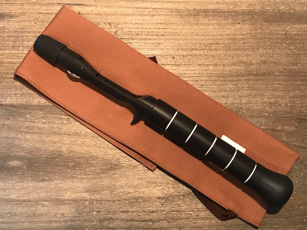 富士グリップを彷彿とさせるデザインのアルミ製グリップです。ヘッドキャップが小さくリールフット部分の沈み込みが浅いので、チャンピオンタイプのグリップでは使えなかったロープロファイル型のリールもおおむね使えます。フェルールをつかむ部分は新開発の樹脂コネットで、ヴィンテージ物など太めのバットフェルールがついたロッドや、一部の細身のフェルールは入らないものもございます。(その場合は別売のブライトリバー製バットフェルールへの付け替えをご検討ください)