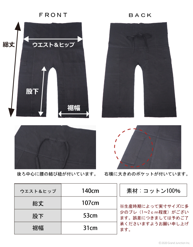 W140、H140、股上54、股下53、ワタリ32.5、裾幅31。