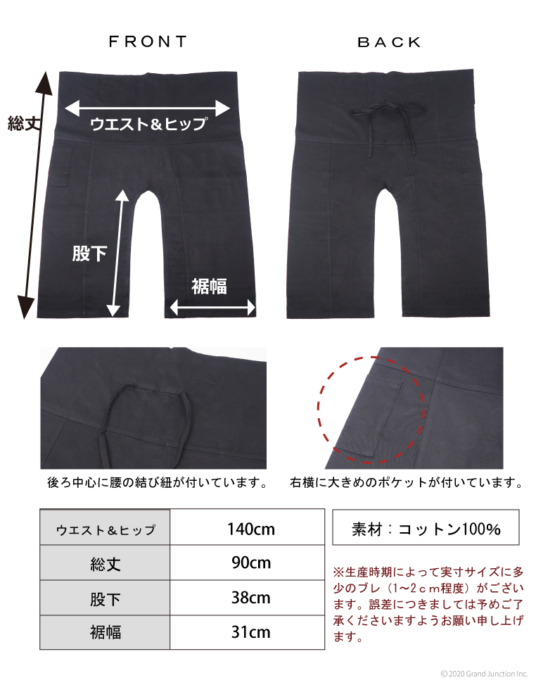 W140、H140、総丈90、股下38、裾幅31。