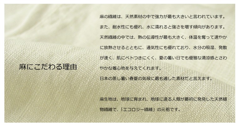 涼しい色合いのナチュラルを作るために、透けにくい厚さを考慮した麻生地を選びました。
