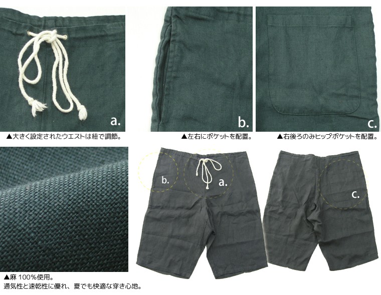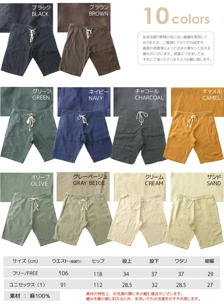 イージーパンツ メンズ レディース 麻パンツ ハーフパンツ
