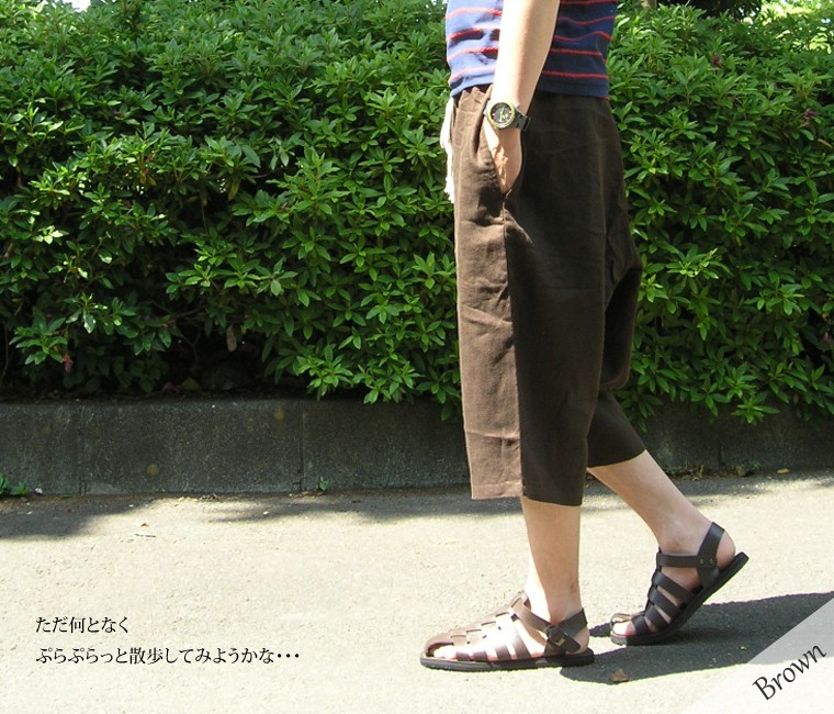 次にこだわったのは『素材』。夏の暑い日にでも快適に穿けるパンツを目指し、『100%麻』を使用。通気性、速乾性にすぐれ蒸れにくいのが特徴的。
