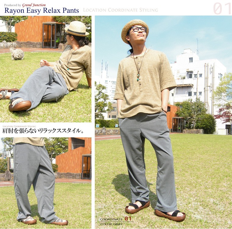 イージーパンツ メンズ レディース レーヨンイージーリラックスパンツ