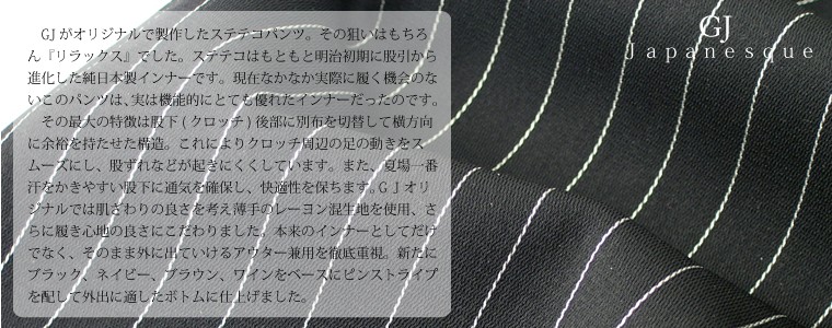 江戸末期から明治初期にかけて着物下(インナー)として誕生したステテコには、伝統だけではない数々の機能性があります。