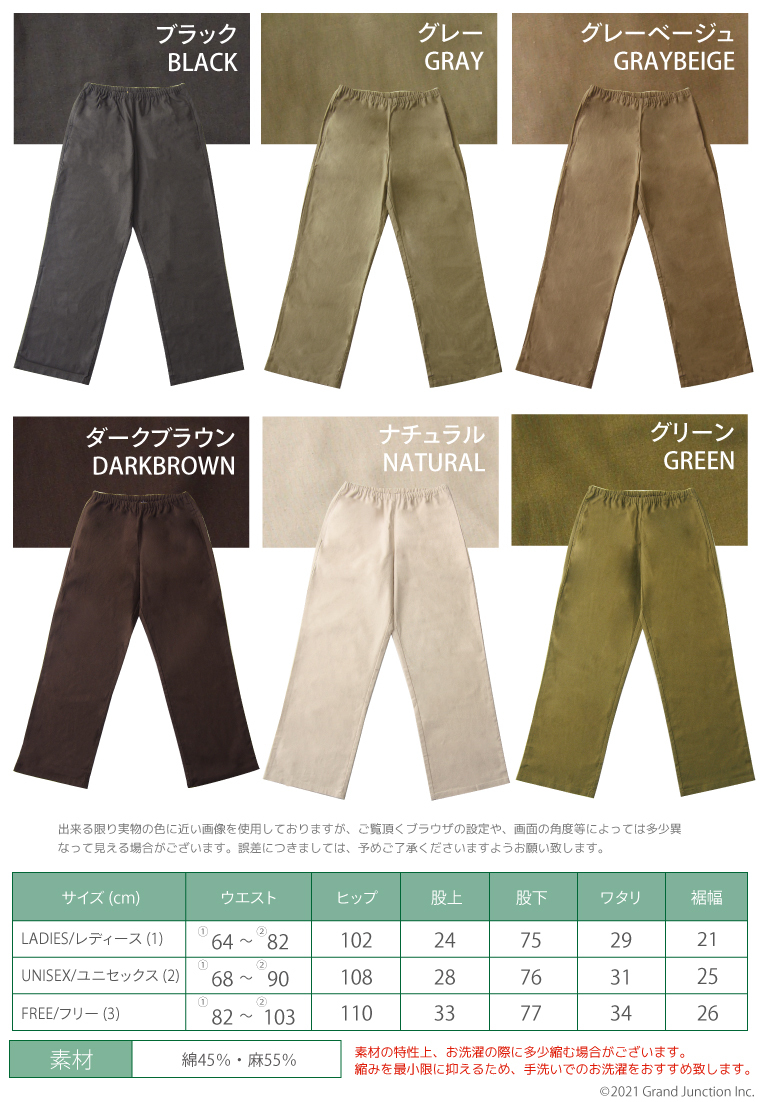 (FREE):W82~103、H110、股上33、股下77、ワタリ34、裾幅26。