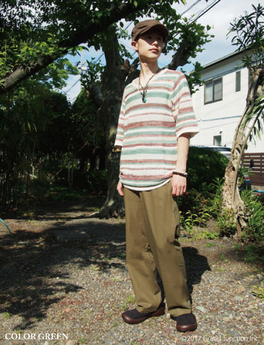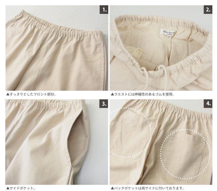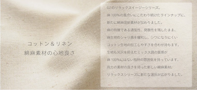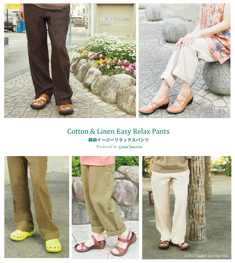 【メール便送料無料】【GrandJunction-Relax】(グランドジャンクション)から、これまで大人気のリラックスイージーパンツに綿麻混紡素材が加わりました。これまで同様の通気性、発散性を確保しつつ麻100%に比べシャリ感が少なくシワになりにくい生地です。表面の質感も光沢が抑えられ、よりミックス調(杢調)のカジュアルな雰囲気になりました。ディテールはNEWデザインのイージーパンツ同様4ポケット仕様、そしてゴムウエスト、ドローコードのダブル調節です。エスニックな趣が強かったこれまでの麻イージーパンツにレギュラー仕様の綿麻タイプが加わり、さらにイージーパンツの選択肢が広がりました。