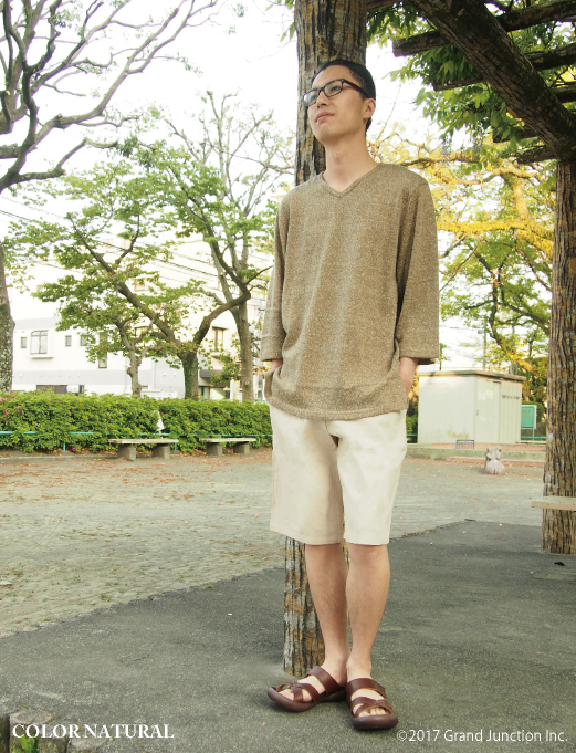 (特徴)ビッグシルエット オーバーサイズ 無地 5分丈 リネン 綿 ナチュラル