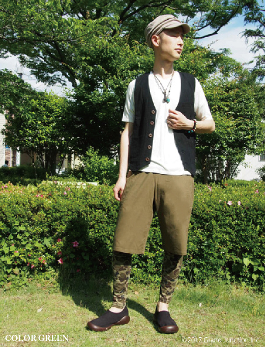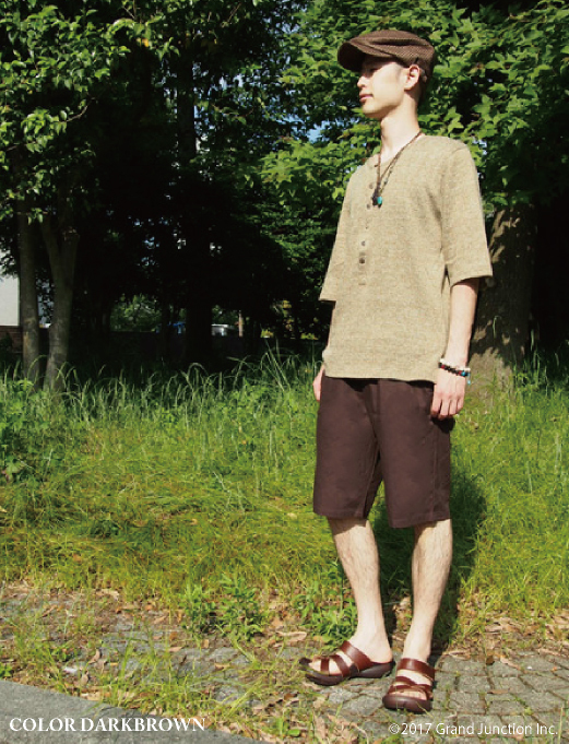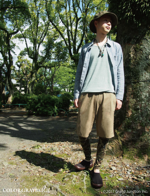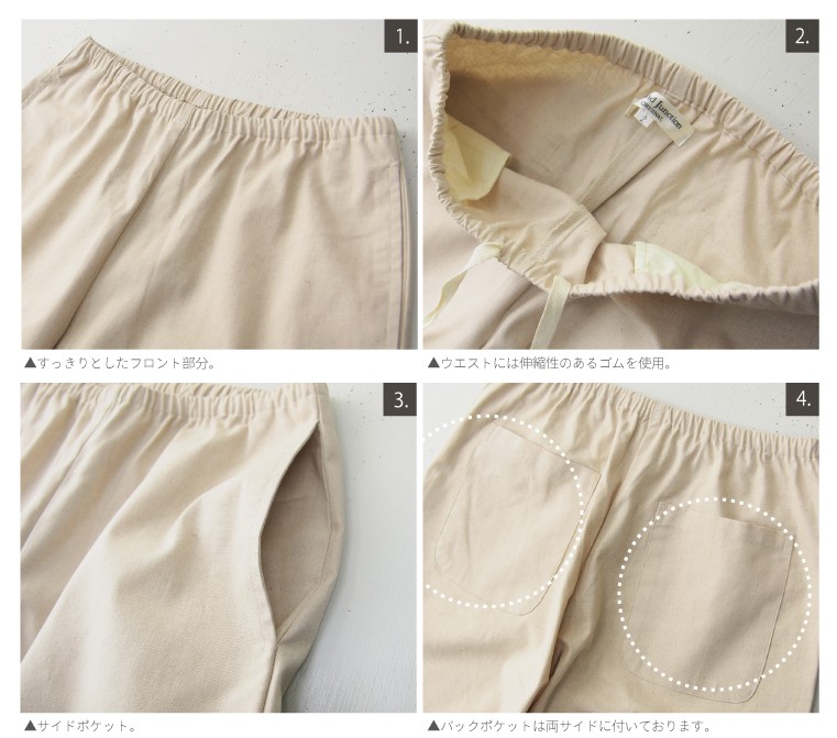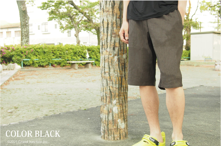これまで同様の通気性、発散性を確保しつつ麻100%に比べシャリ感が少なくシワになりにくい生地です。表面の質感も光沢が抑えられ、よりミックス調(杢調)のカジュアルな雰囲気になりました。ディテールは4ポケット仕様、そしてゴムウエスト、ドローコードのダブル調節です。