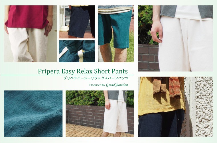 【GrandJunction-Relax】(グランドジャンクション)から、これまで大人気のリラックスイージーパンツシリーズにプリペラ素材イージーショートパンツが登場!!ウエストゴムと内側ドローコードの2通りのサイズ調節を採用した文字通りイージーに履けるショーツです。綿麻のプリペラ素材はバルクのある生地で、肌触りの柔らかさとタフな質感が両立しています。