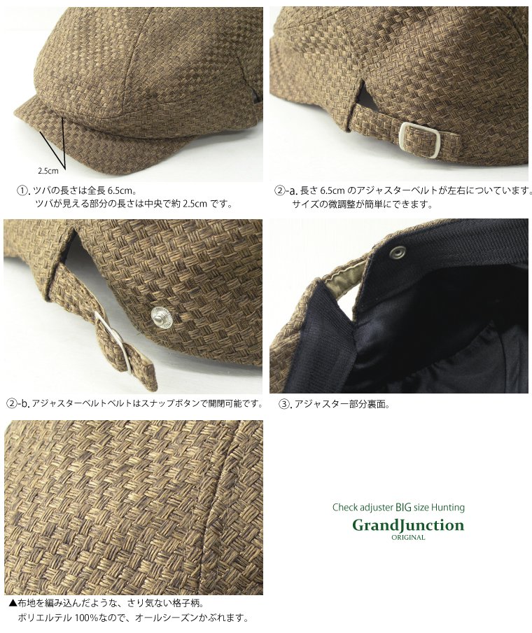 ハンチング帽 メンズ アジャスタービッグサイズハンチング チェック 大きいサイズ