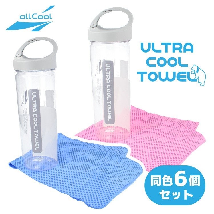 同色6個セット 冷感 ウルトラクールタオル 超吸水 スポーツ 夏 セームタオル スイムタオル PVA 熱中症対策 暑さ対策 まとめ買い ALL COOL AC-UT001 全2カラー
