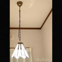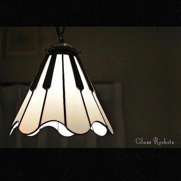 ・作品はホワイトガラスとブラックガラスを使ってピアノの鍵盤を模したペンダントランプです。