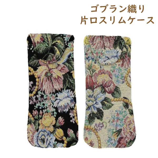薄型 花柄 ゴブラン織りスリムメガネケース 小物入れ 片口タイプ