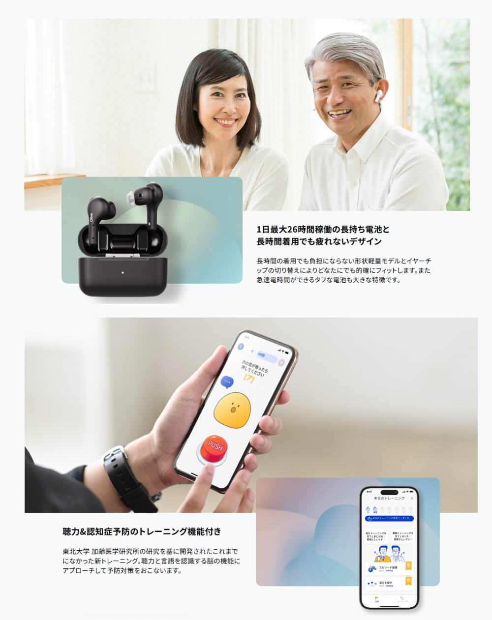 最大音響利得は60dBで多くの聞こえのお悩みをサポート。