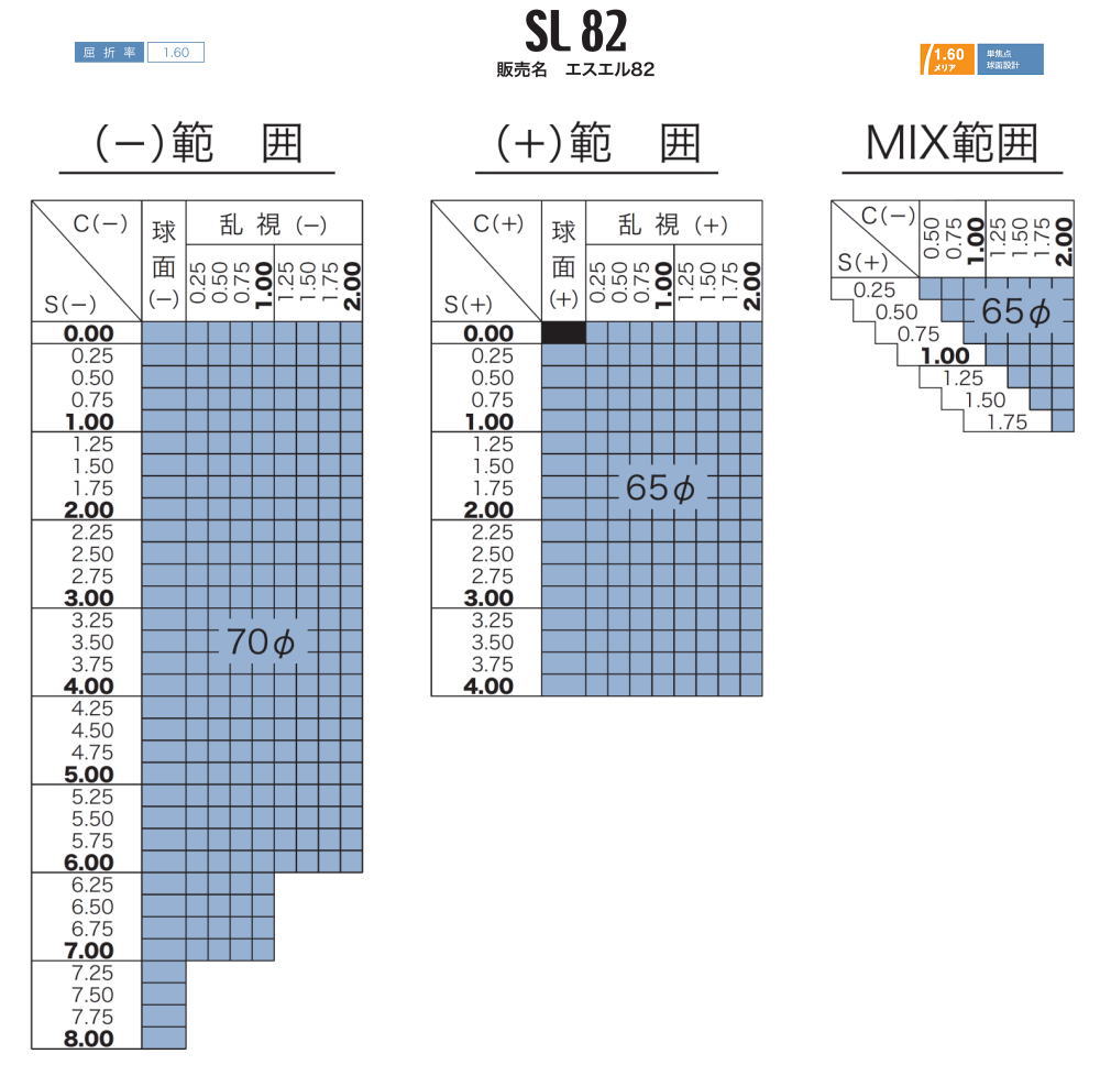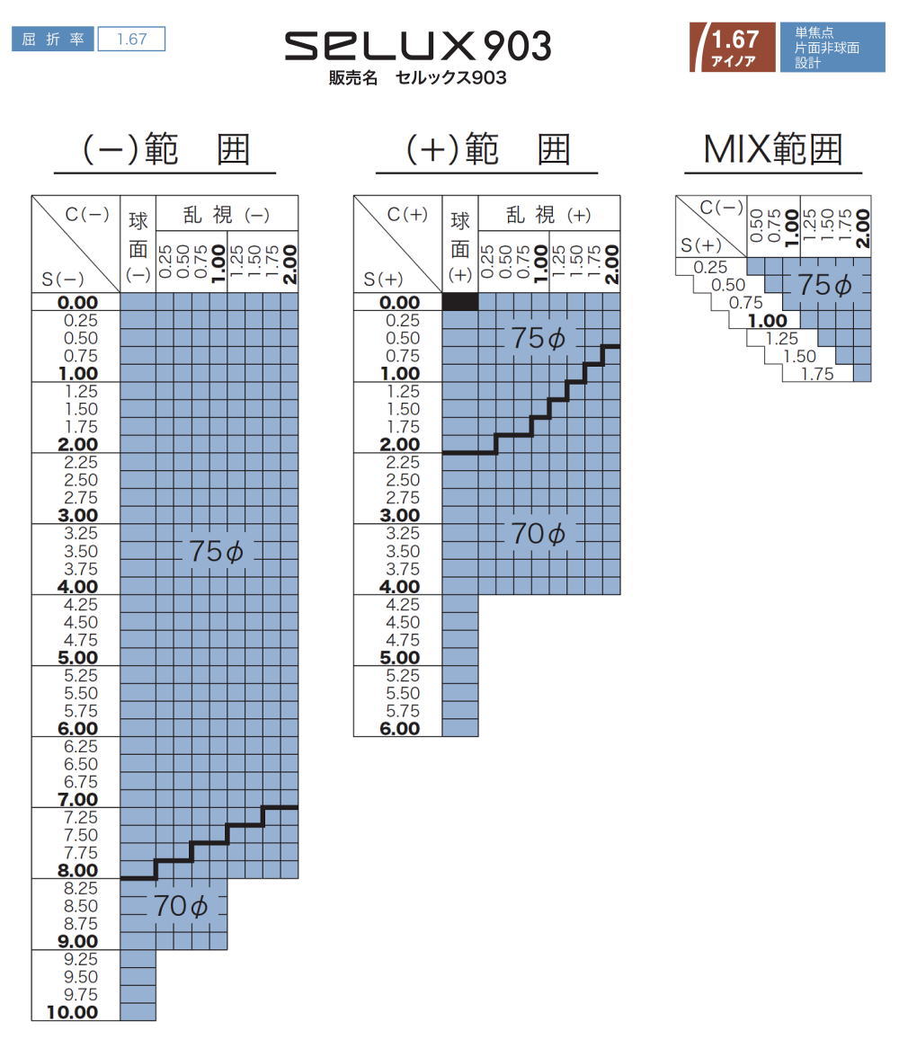 ■レンズ種類により度数範囲が異なりますので度数範囲表を