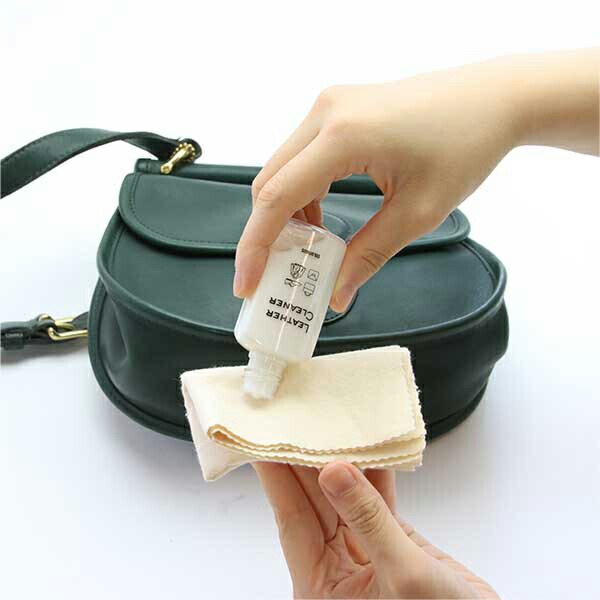 2.レザークリーナーをクロスに取り、古いクリームや汚れを落とします。