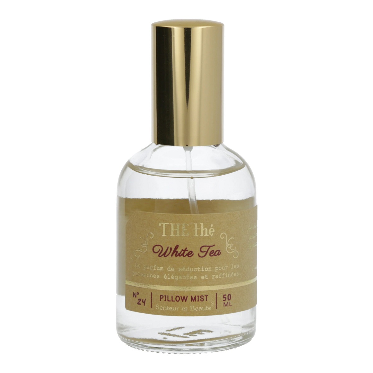 Senteur et BeauteTHE the誰かと分かち合いたくなるような、心地よいティーフレーバーをお届けします。素朴なクラフト紙にゴールドのラインが輝くデザインは日常使いだけでなく、ギフトにも最適です、ピローミスト50ml心地よいティーフレーバーが眠りを誘うピローミスト。お休みになる前やリラックスしたいときに、枕やシーツなどのリネン類にスプレーしてお使いください。穏やかな香りが広がり、心地よい香りに包まれてお休みになれます。本体サイズ:直径42ミリ、高さ98ミリ。ホワイトティー:透明感のあるみずみずしいホワイトティー。マンダリンやシトロンの爽やかさとローズやジャスミンの華やかな甘みが心地よく香り、あなたの魅力をより一層引き立ててくれます。ブラックティー:ほどよい甘さに渋みも感じるブラックティー。上品で洗練されたオリエンタルな香りは、どんなシーンにも良く合います。グリーンティー:まろやかな甘みのグリーンティー。シトロンと甘酸っぱいルバーブ、フレッシュなフィグリーフのやさしい香りは、気持ちを穏やかにしてくれます。made in France
