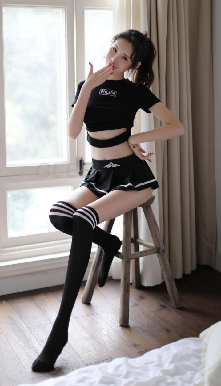 胸元に「police」のロゴが入っているかわいいチアガール風コスチュームです。