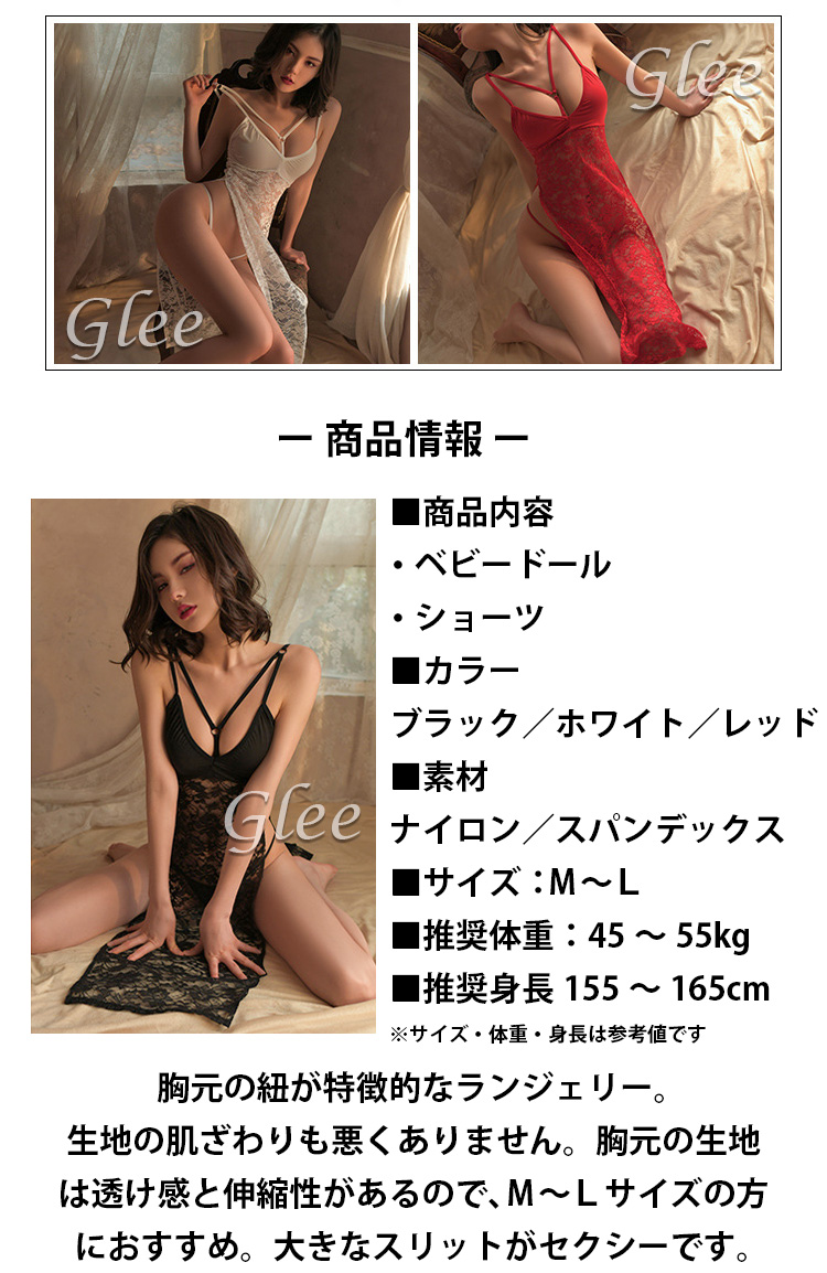 胸元のデザインと、大きなスリットが特徴のベビードールです。
