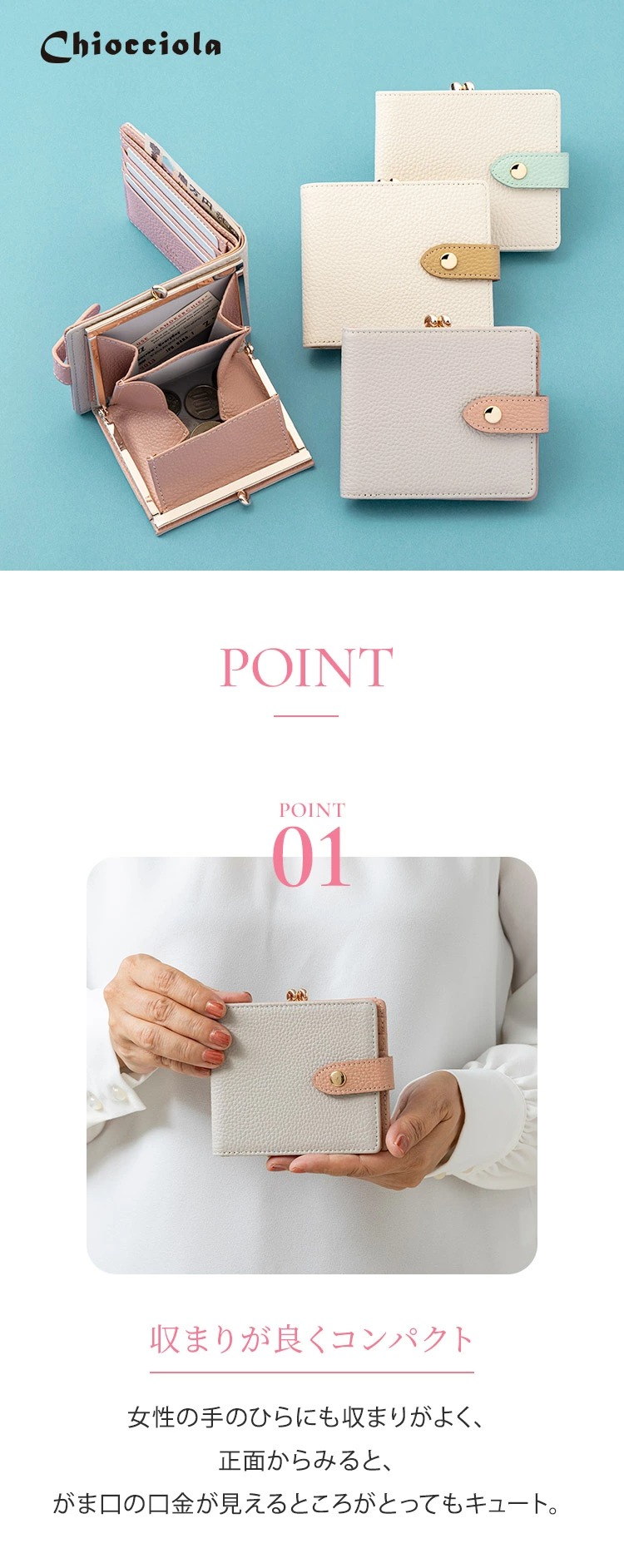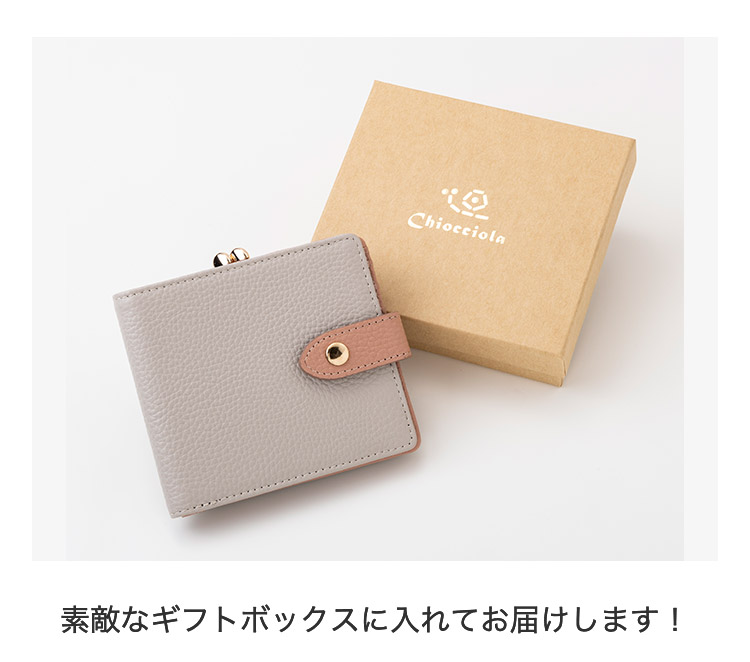 がま口財布 二つ折り 本革 レディース CHIOCCIOLA キオッチョラ コンパクト バイカラー ボックス型小銭入れ カード収納 名入れ無料