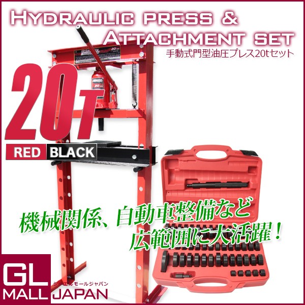 油圧プレス 49種アタッチメントセット ショッププレス 最大能力20t メーター無 門型 ベアリング圧入 鉄板の歪み修正 ベアリング脱着 曲がり直し