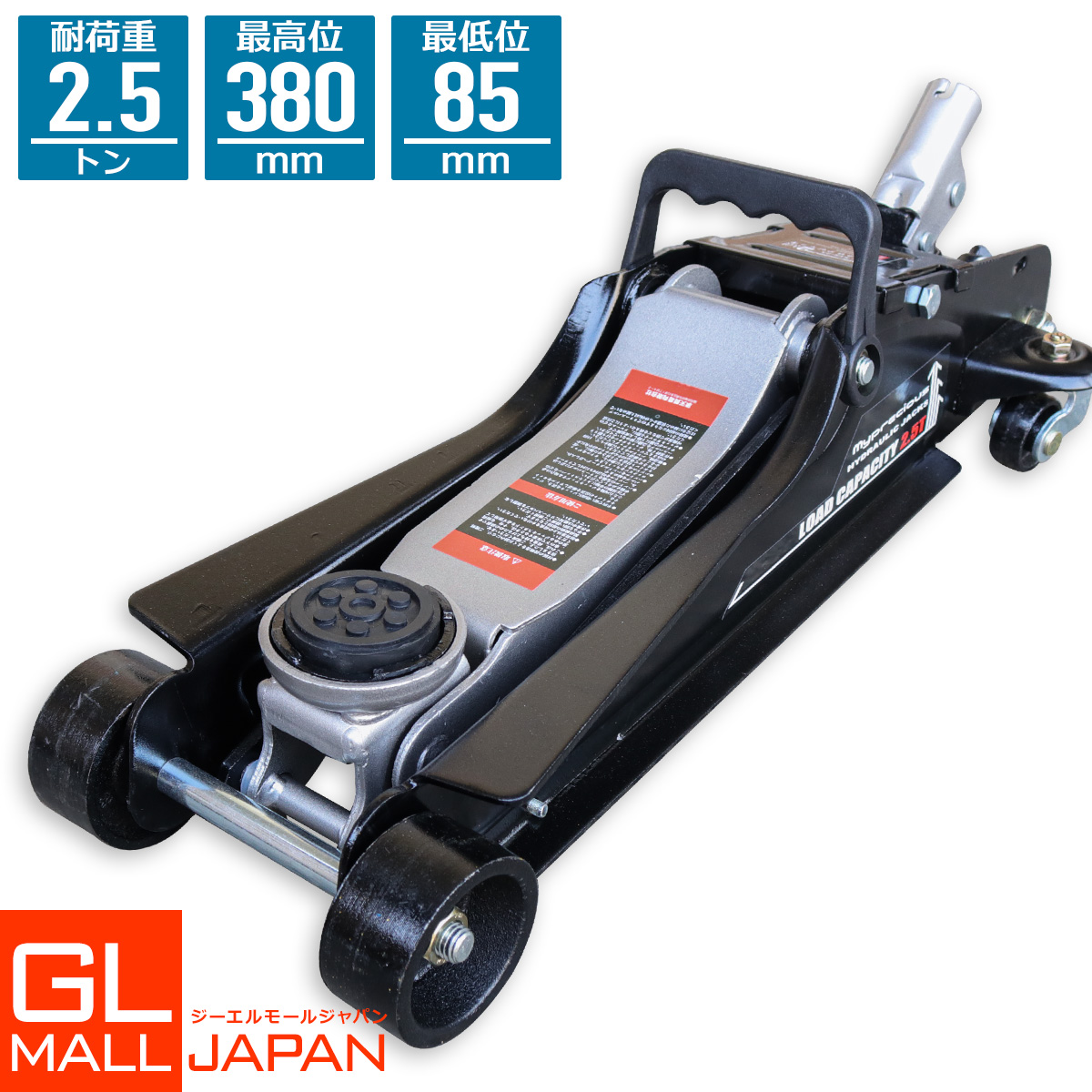 軽量設計 油圧フロアジャッキ 2.5t 低床 85〜380mm スチール製 ローダウン車対応 保護パッド付 日本語説明書付き