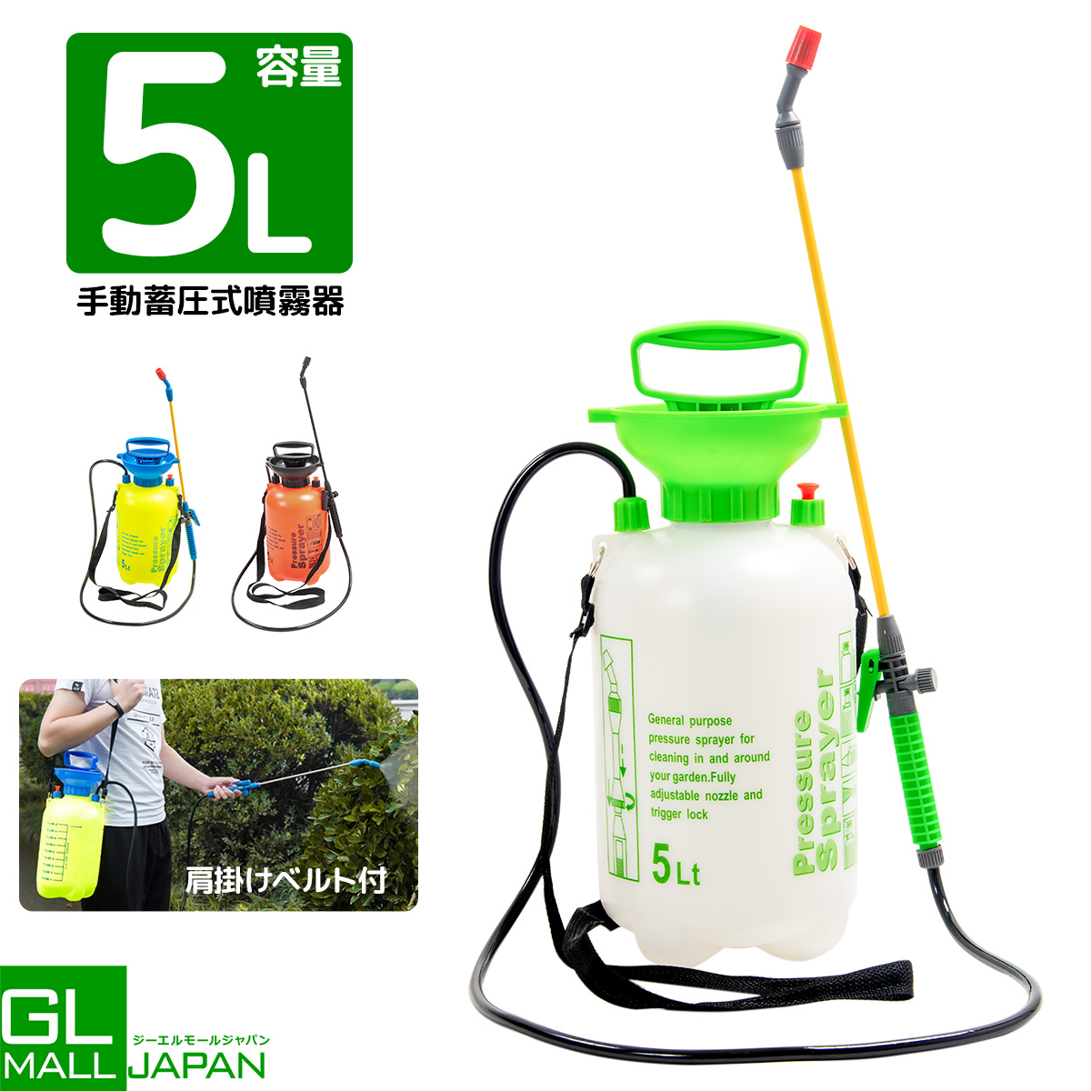 容量5リットル!肩掛け用の手動蓄圧式スプレーです。