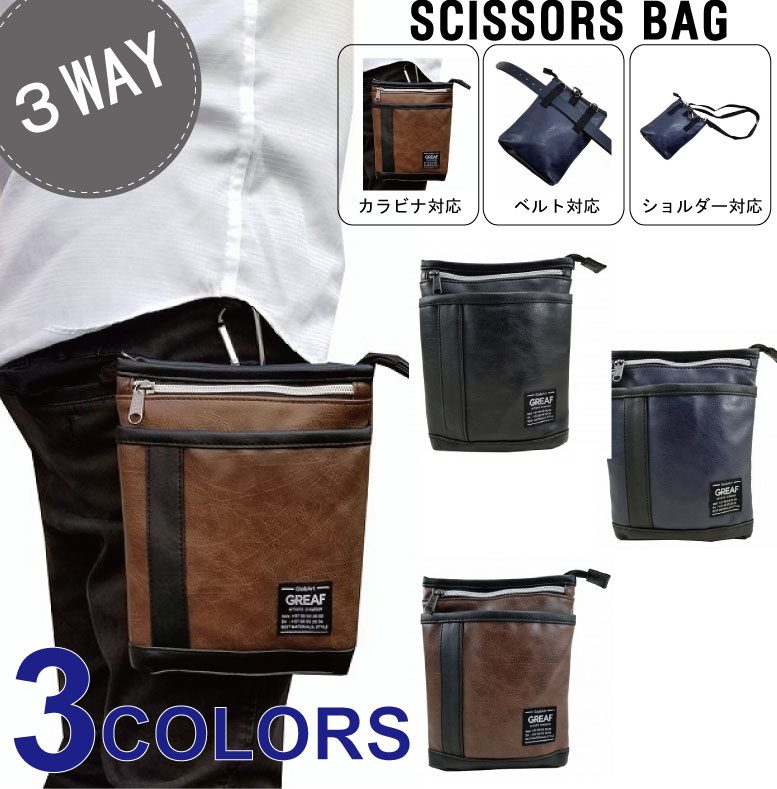3WAY 合皮 ショルダー 腰 ベルト通し シザー 小型 メンズ 普段使い お出かけ アウトドア 軽量 GREAF