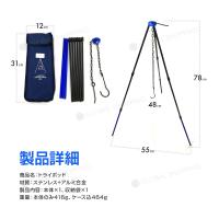 トライポッド ブルー 焚火 三脚 キャンプ 鍋 鍋吊り 軽量 コンパクト 折りたたみ 収納袋 調節 フック ソロキャンプ アルミ レジャー バーベキュー アウトドア
