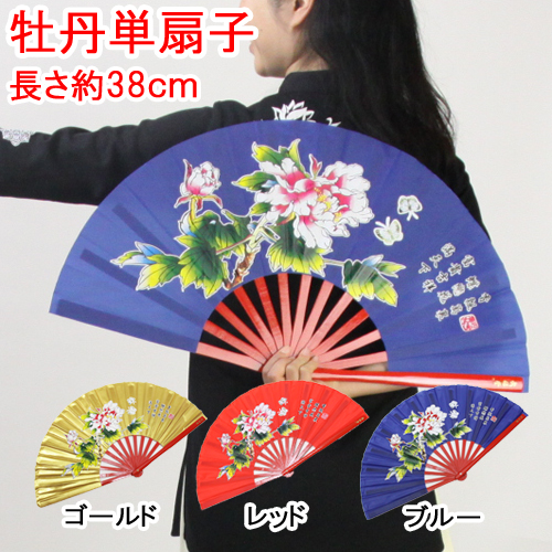 太極拳扇 太極扇 太極扇子 太極拳扇子 高級単扇子 牡丹 ボタン 全長約38 竹製 袋付き