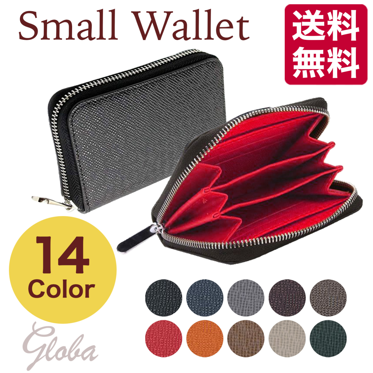 財布 ファスナー付き カード コインケース メンズ レディース 片手に持てる大きさ Small wallet 黒 茶 赤 送料無料