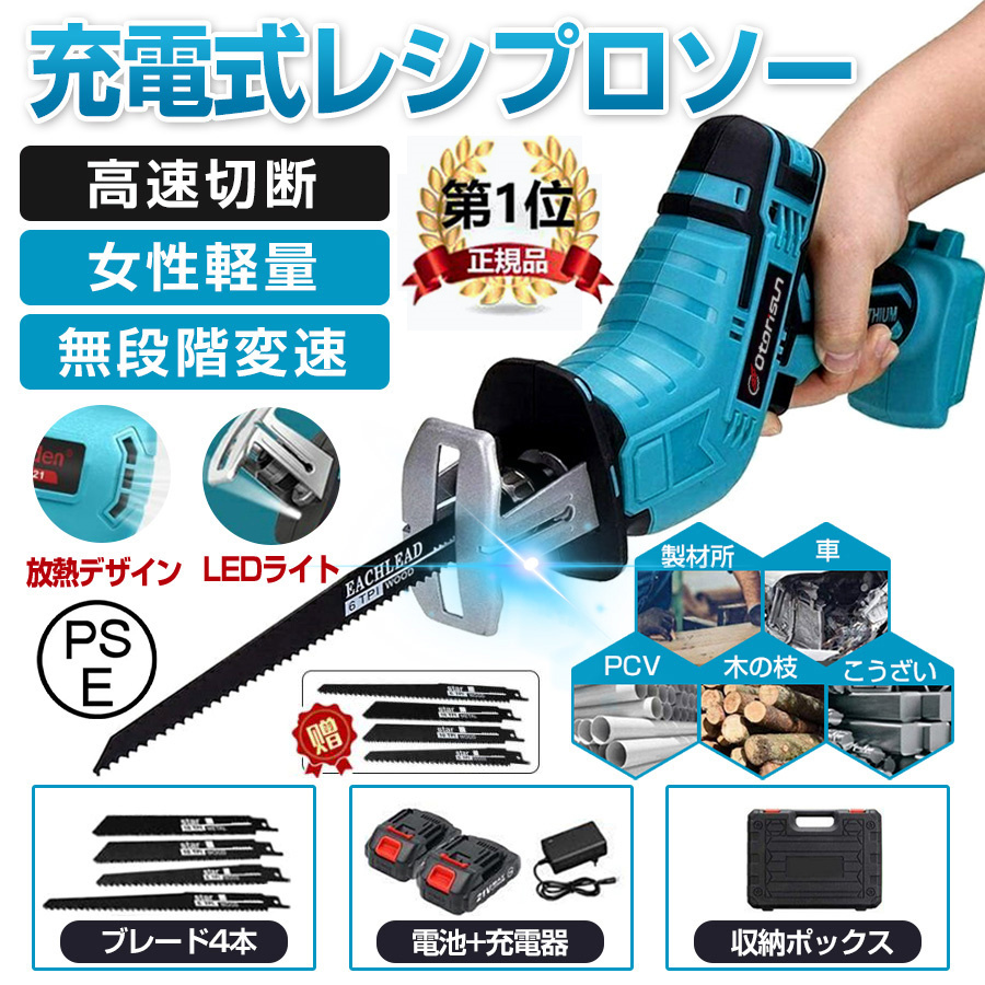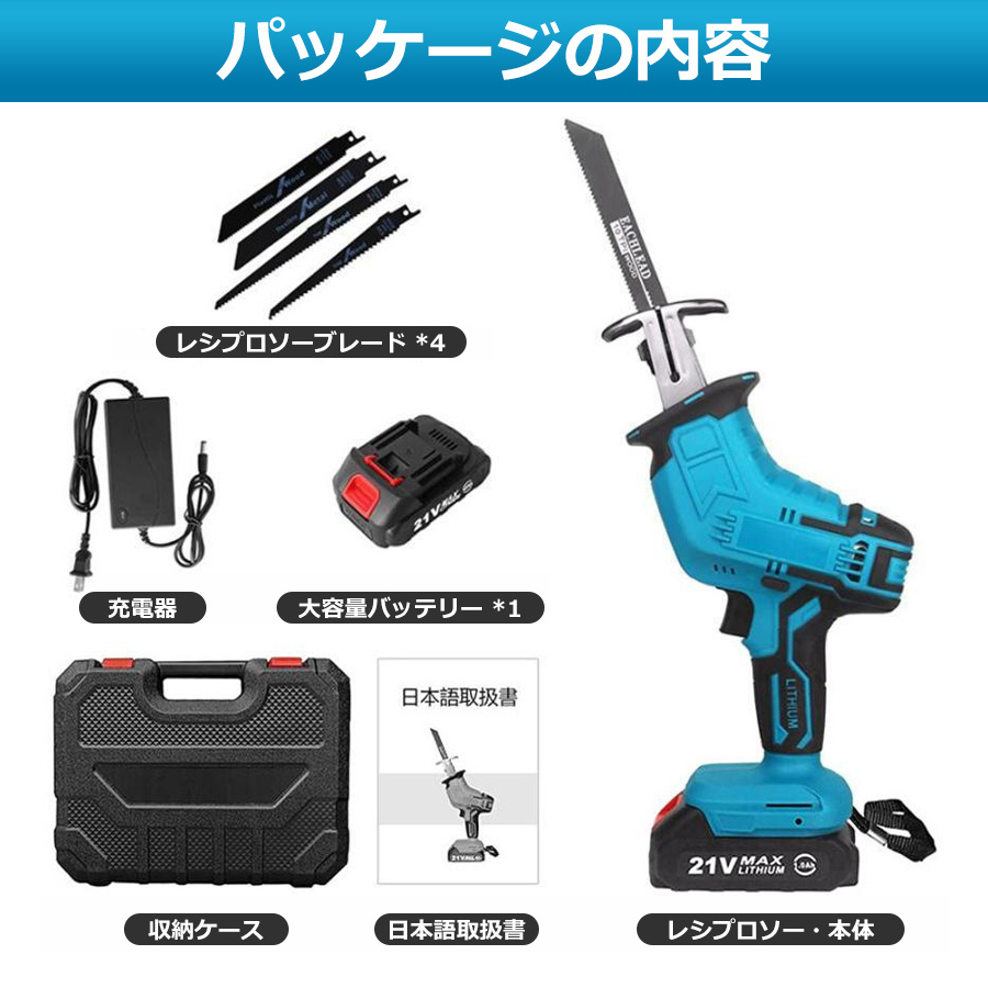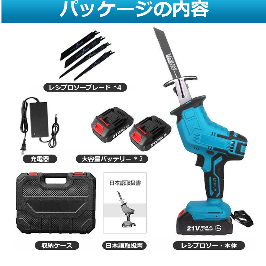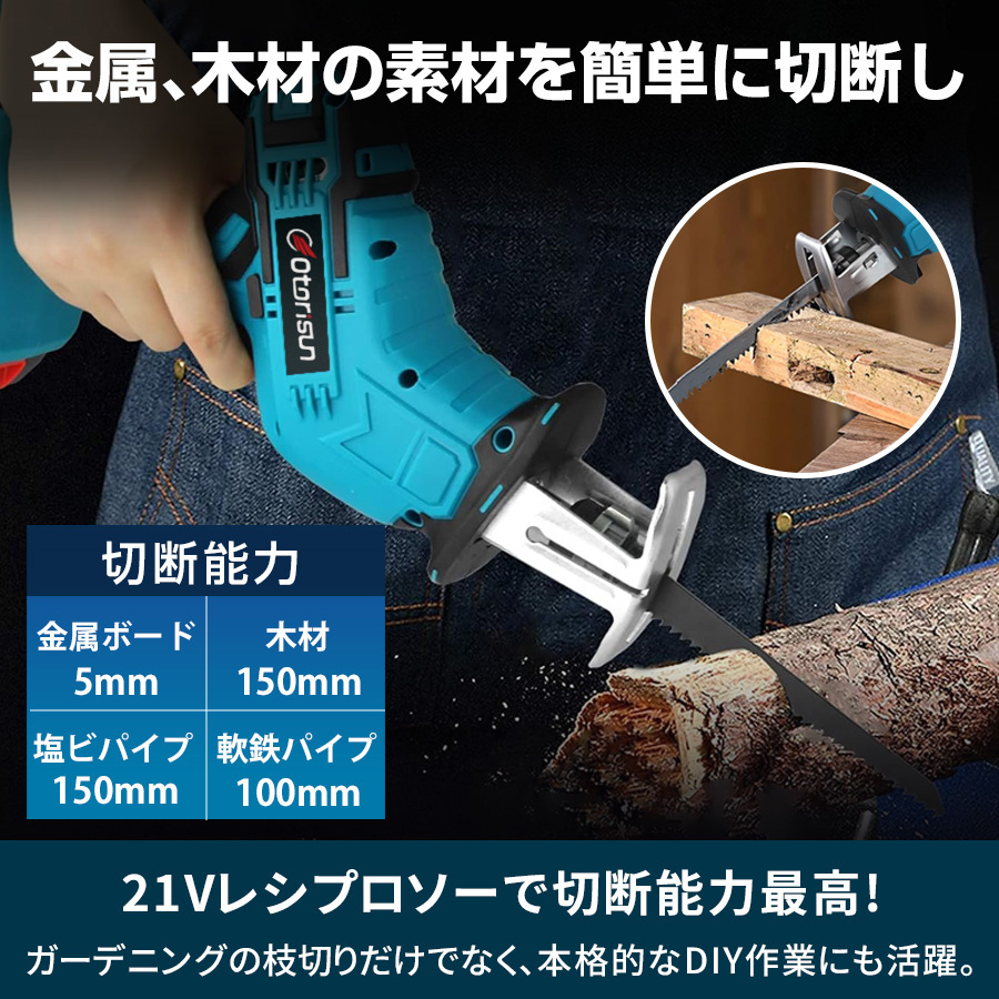 【21V高速切断可能】充電式レシプロソーのコードレス設計は非常に便利で、どこでも使用できます。3000RPM高速ストローク&無段変速機構、高速ストローク、従来品と比較して切断スピードが約20%アップしました。
