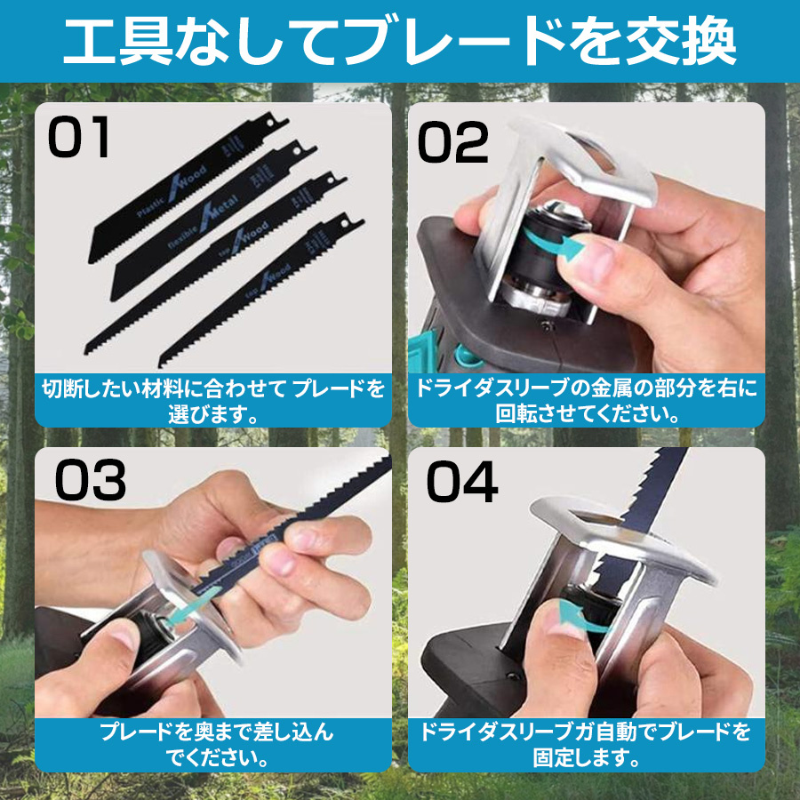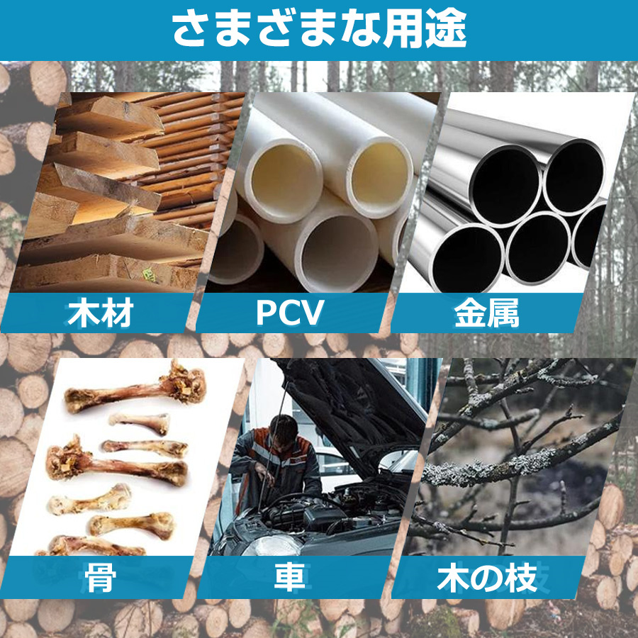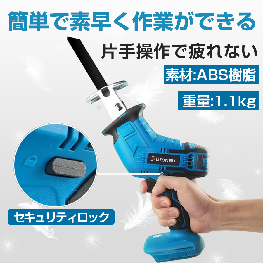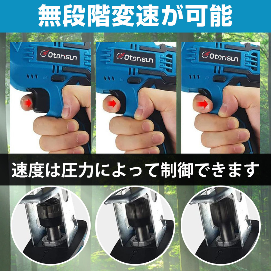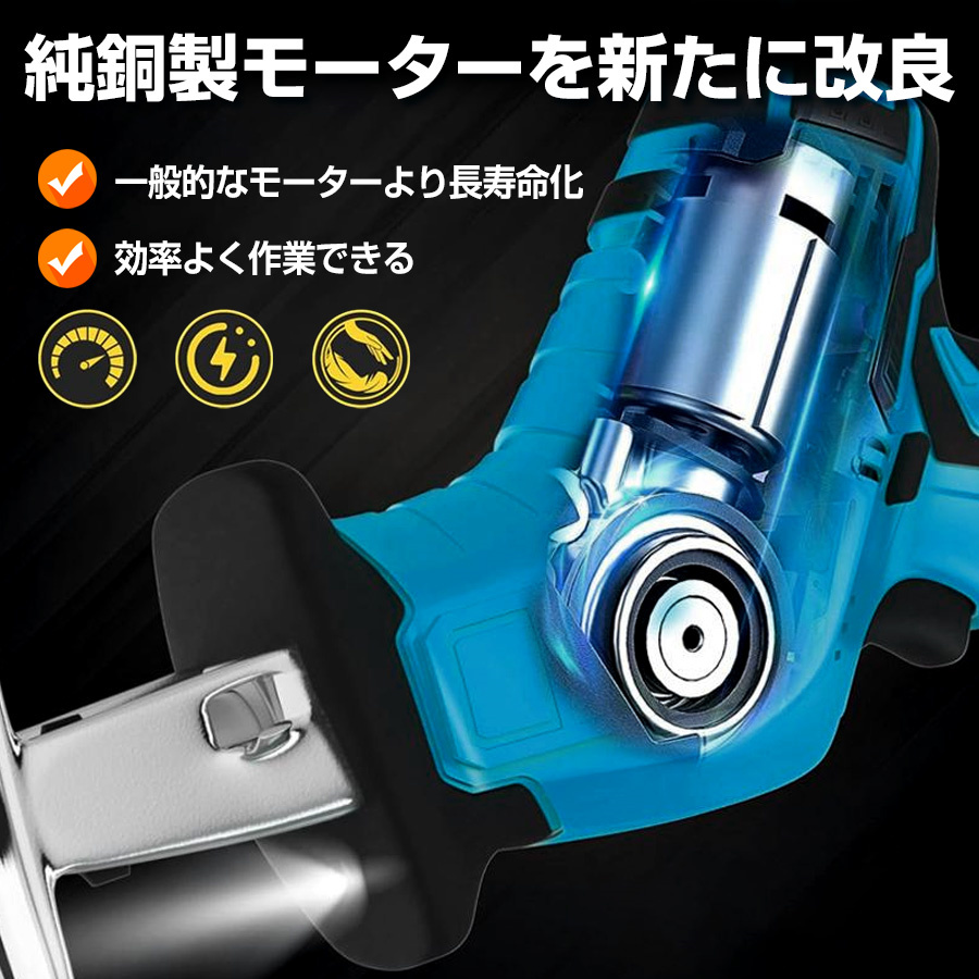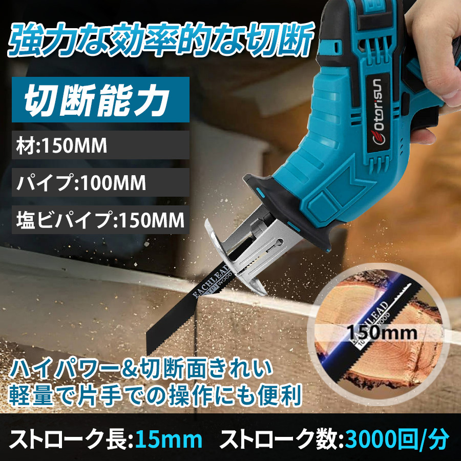 【4本替刃が持つ】マキタの18Vリチウムイオンバッテリーを使用して、高速で切断することが可能です!木材/15cm 塩ビパイプ/15cm 軟鉄パイプ/10cm軟鉄材/3mm厚。3000min-1高速ストローク&無段変速機構、高速ストローク、従来品と比較して切断スピードが約20%アップできます。
