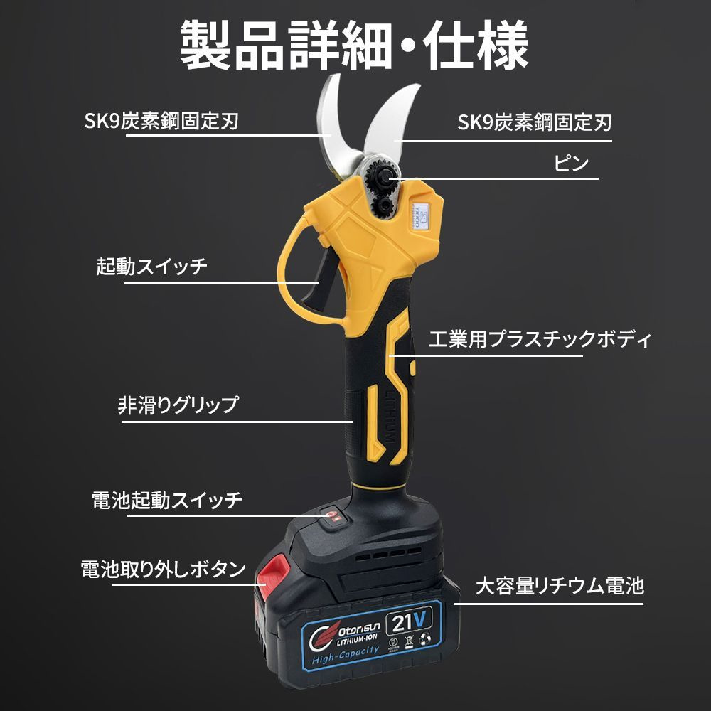 人間工学に基づいた、軽くて持ちやすい耐久性抜群の高温焼入れ炭素鋼のSK5合金ブレードを採用した電動剪定ばさみです。頑丈で耐久性にも優れています。