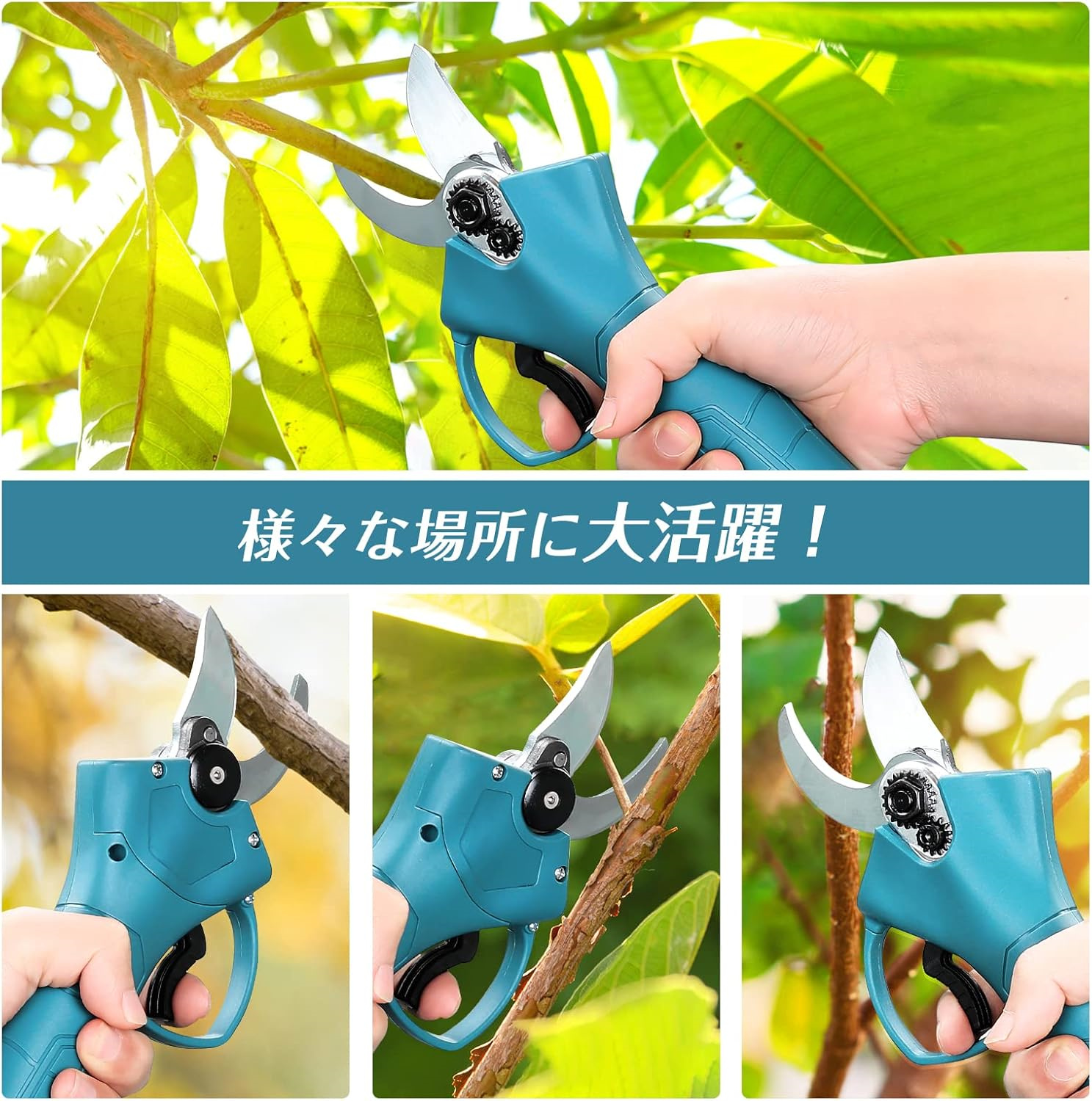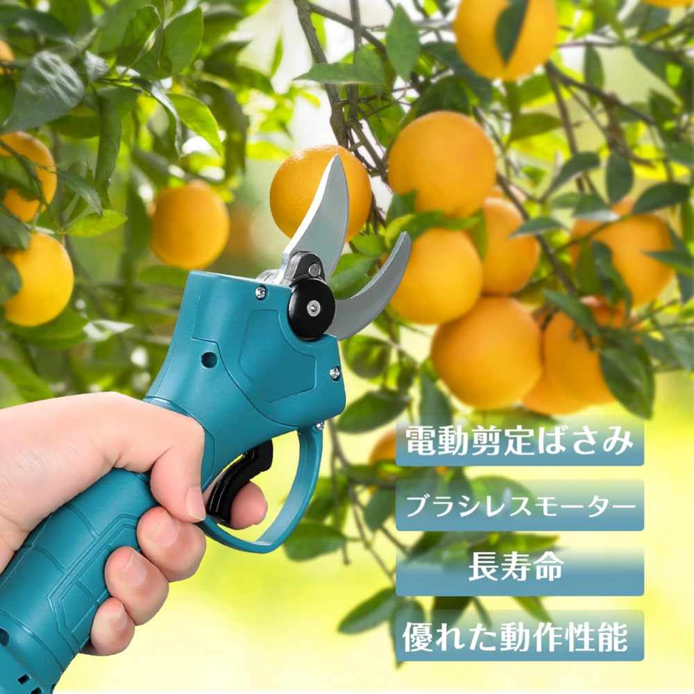 電動剪定ハサミは、公園・庭園・果樹園・農場などでの園芸・枝切り・果樹剪定に最適。竹や木工DIYにも使用可能。剪定バサミ 電動 コードレスとして家庭用・業務用どちらにも活躍。