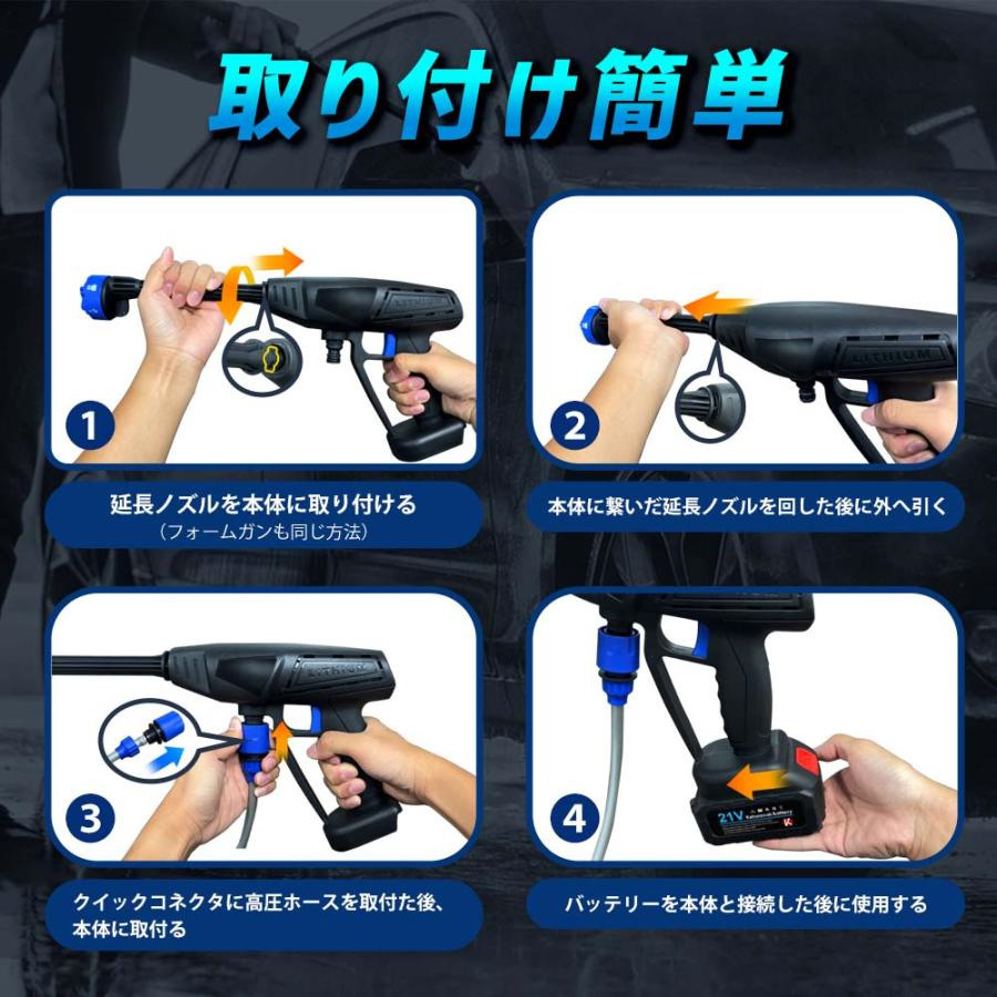 (2)これらのアタッチメントを使い分けることで、洗浄作業の幅が広がり、より効率的に作業を行うことができます