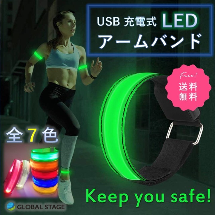 ランニング ライト LED アームバンド 充電式 光る ジョギング ウォーキング 事故防止 運動 反射バンド 自転車 夜間 腕 交通安全