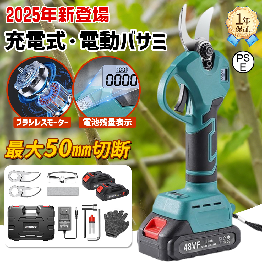 剪定ばさみ 電動剪定ばさみ 枝切り鋏 剪定バサミ 電動剪定バサミ 枝切りはさみ 枝切りバサミ のこぎり 枝切り 充電式 コードレス のこぎり チェーンソー 切り鋏 ノコギリ 剪定鋏 充電 電動ハサミ ブラシレスモーター 小型軽量 開き口50mm 開き角度調整可能 庭 園芸用 果樹用 家庭用 枝切り 女性用 2025新品 電池残量表示 果樹用 家庭用