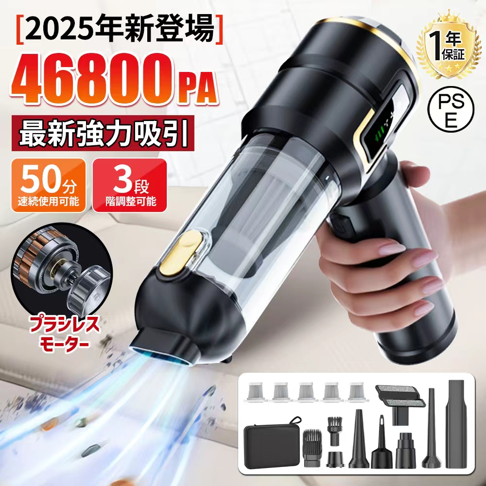 ハンディクリーナー 掃除機 46800pa 60min連続運転 ワンタッチ開閉 3段階調整可 ミニ掃除機 コードレス 静音 強力吸引 小型 家用 車用 冬ギフト お手入れ簡単